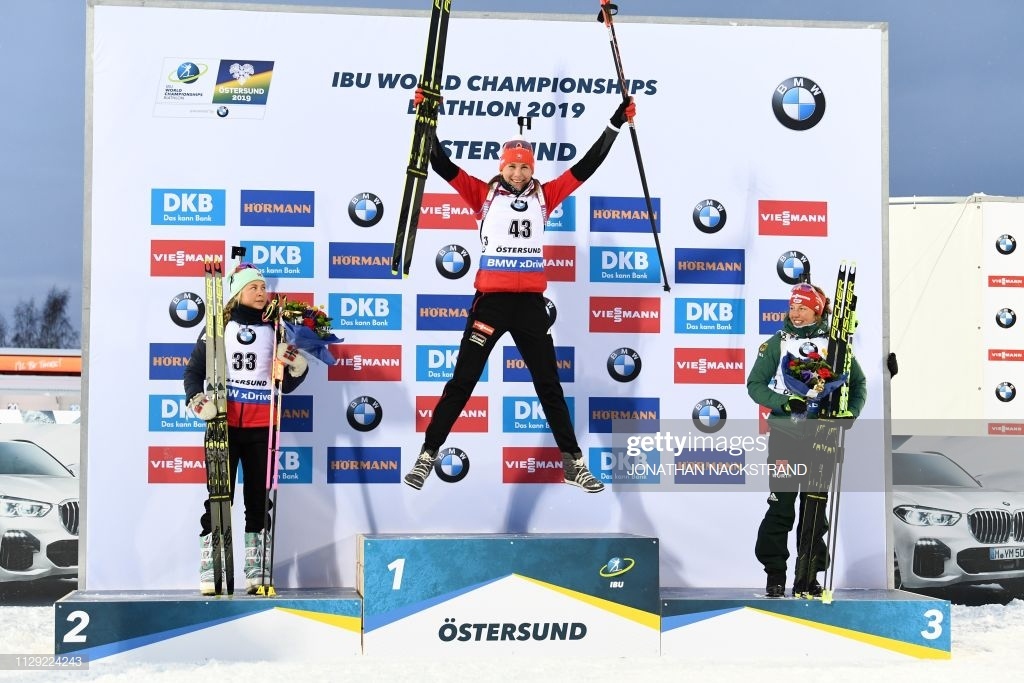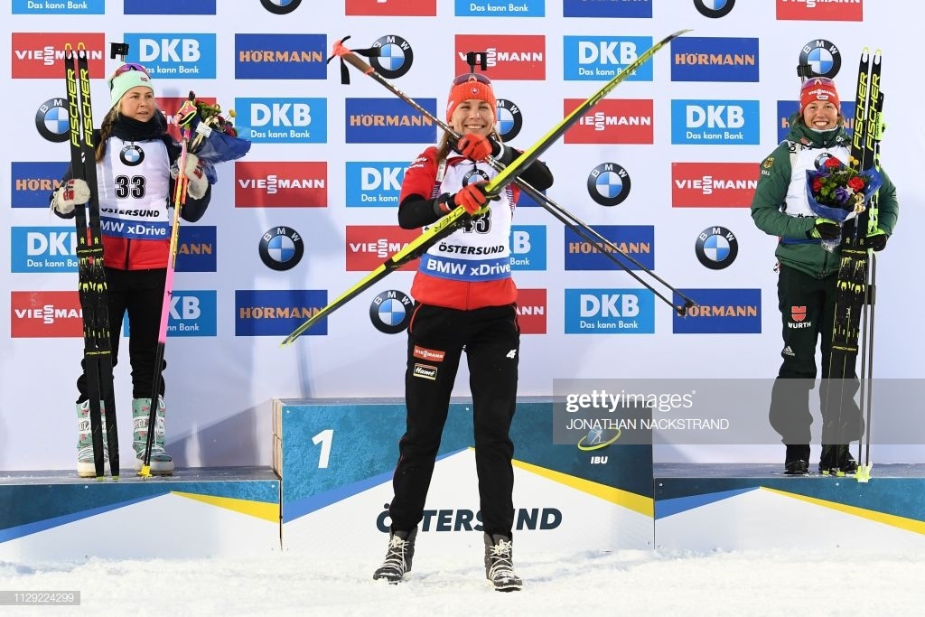Анастасия Кузьмина с одним промахом выиграла спринтерскую гонку чемпионата мира в Эстерсунде, норвежка Ингрид Тандревольд с чистой стрельбой вторая, Лаура Дальмайер из сборной Германии, также с чистой стрельбой, третья.