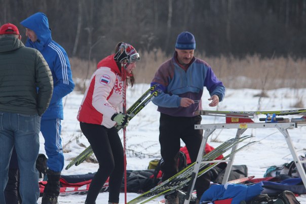 Игорь Усиков (спортшкола 101 "Тушино") готовит лыжи своей воспитаннице Карине Борткевич