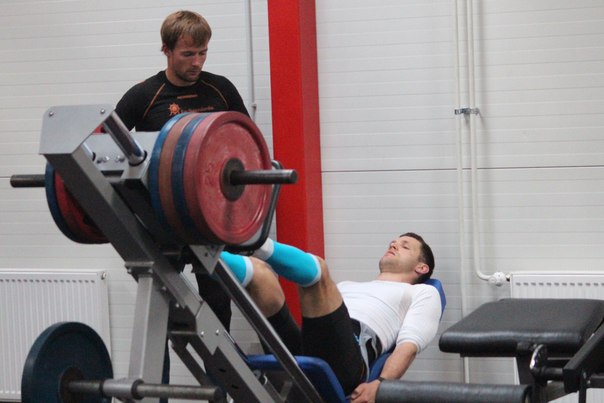 Антон Гафаров под внимательным контролем Егора Сорина, представителя комплексной научной группы ЦСП, выполняет упражнение развитие максимальной силы