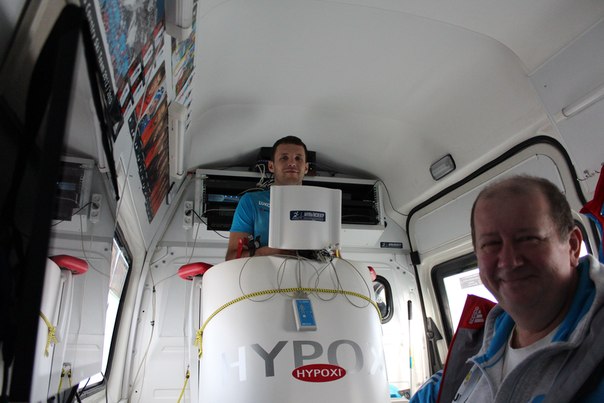 Антон Гафаров под контролем Александра Ковеля проходит восстановительную процедуру в специальной передвижной лаборатории ЦСП
