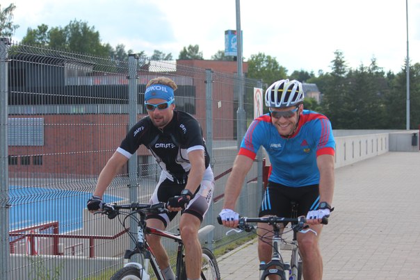 Антон Гафаров на велотренировке в сопровождении представителя КНГ Егора Сорина