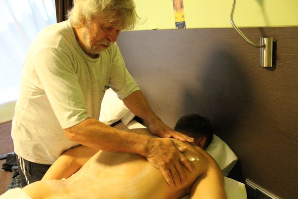 Массажист Валерий Иванович Попов за работой