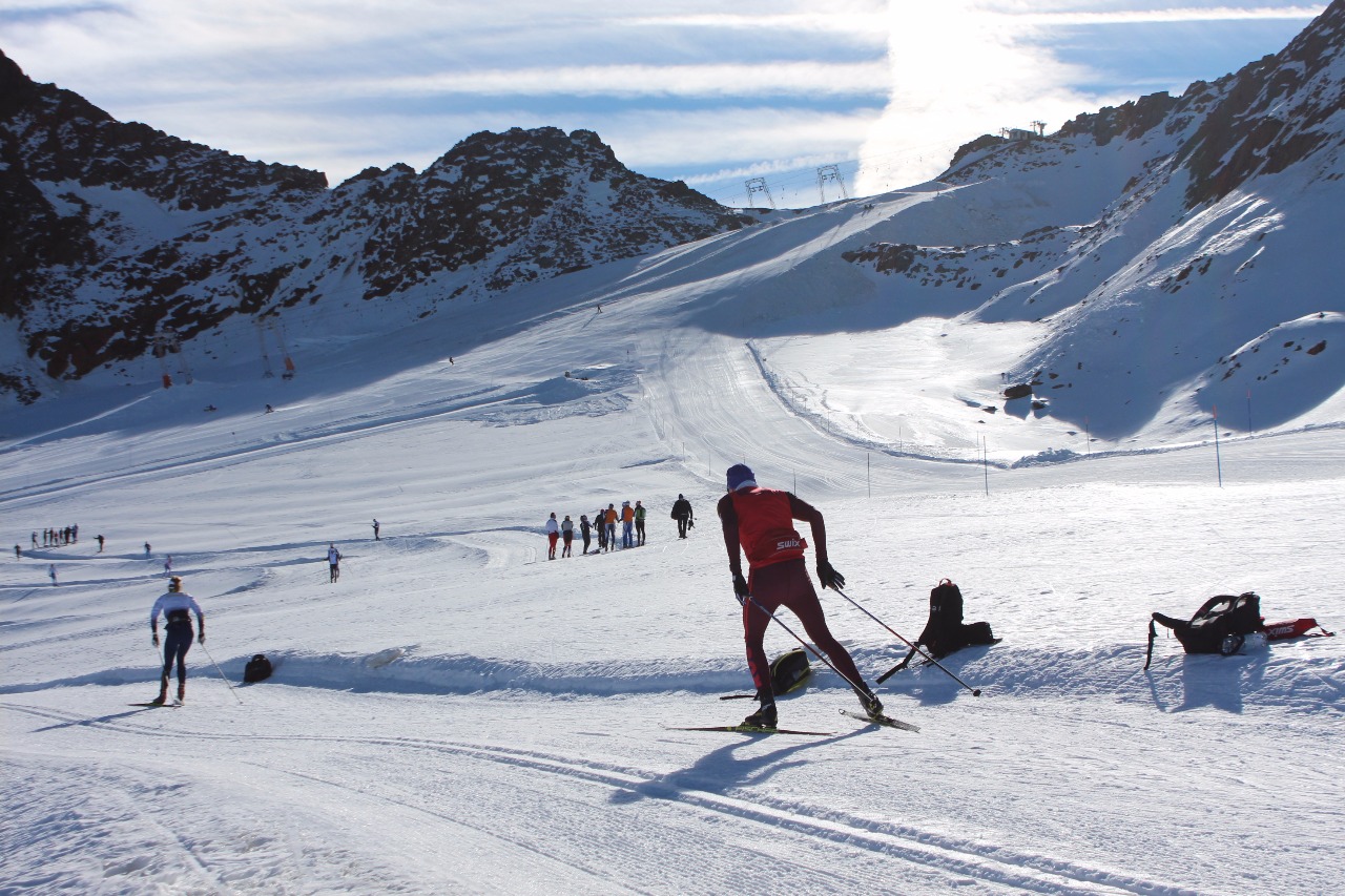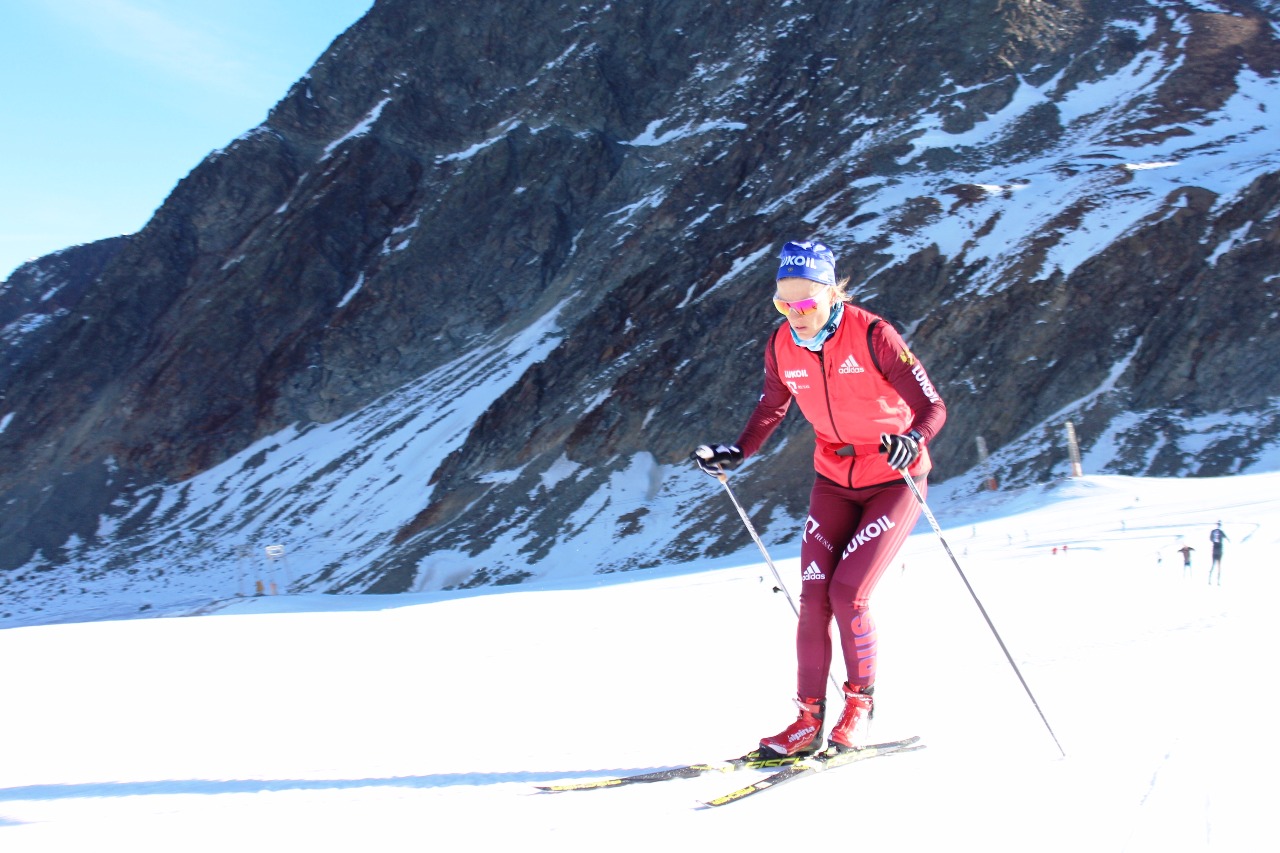 В группе Крамера тренировки на глетчере проходят утром – уже в 8.30 спортсмены занимают места в кабинке, чтобы подняться на высоту 3200 метров над уровнем моря. А затем скатиться на коньковых лыжах чуть ниже, где на плато проложены петли для тренировок лыжников-гонщиков. Если в этот день запланирована тренировка классическим стилем – то эту пару спортсмены везут со спуска в руках. Чередование стилей происходит практически на каждой тренировке. Бывают дни когда спортсмены тренируют скиатлон: половину работы делают на классике, затем – на коньке.