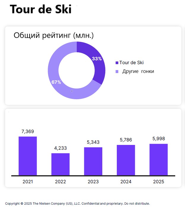В расчеты не вошли заведомо высокие показатели телесмотрения чемпионата мира 2025 в Тронхайме. Представленная статистика охватывает только соревнования Кубка мира.