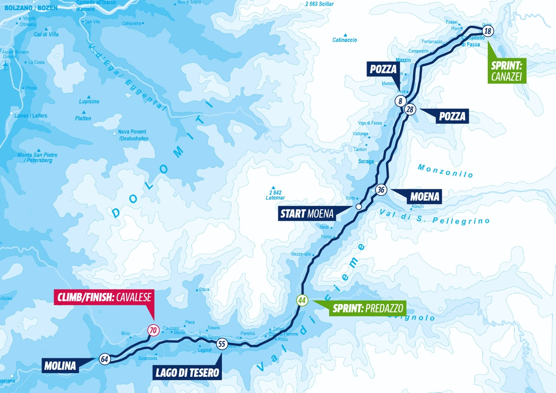А изучать действительно есть что. Маршрут Марчалонги, которая проводится уже 50 лет (первый старт состоялся в 1971 году), в этом году претерпел едва ли не самые серьезные изменения за свою полувековую историю. Из-за пандемии было принято решение по максимуму вывести трассы с узких улочек городков – а по стандартному пути Марчалонга (что в переводе с итальянского «долгая дорога») заглядывает в 13 населенных пунктов. Безусловно, это лишит гонку ее шарма, однако в нынешние времена безопасность превыше всего и поэтому гонка пройдет по альтернативному пути, в основном, вдоль реки Авизио. Благо, снега в этом году не просто много, а очень много – и он продолжает прибывать. В таких условиях подготовить маршруты объезда не составило труда – в том числе и в зоне финиша, который немного отвели от центральной площади Кавалезе. Также сместилось место промежуточного финиша – если раньше он разыгрывался в центре Предаццо, то на этот раз будет установлен у подножия лыжных трамплинов (где всего через три года будут кипеть олимпийские страсти в прыжках с трамплина на Играх-2026). И, как уже говорилось ранее, горный промежуточный финиш был и вовсе упразднен.