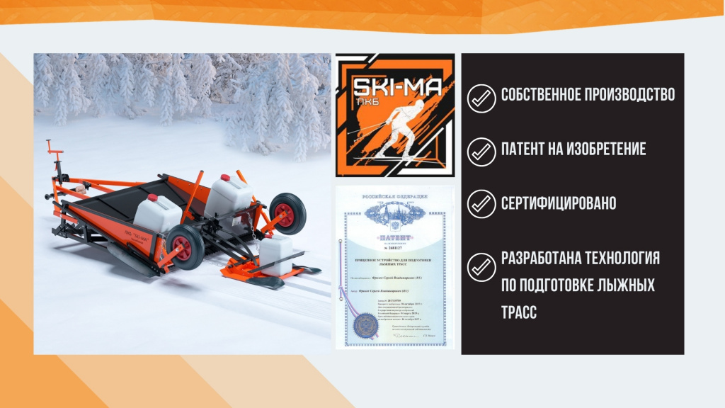 Была проделана большая работа по улучшению внешнего облика оборудования: изменили дизайн, подобрали цветовую гамму. Оно стало ярким, привлекательным и, что очень важно, заметным на снегу и запоминающимся. Для удобства эксплуатации, произвели изменения в конструкции. Создали сайт, сертифицировали оборудование и получили патент на изобретение. Разработали и зарегистрировали логотип компании.