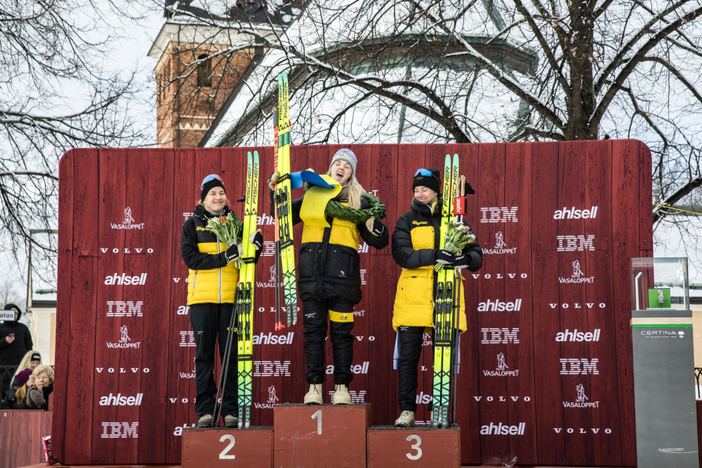 У женщин свою третью за последние четыре года победу в Васалоппет одержала норвежка Эмили Флетен из команды Рамудден, а компанию на пьедестале почета ей составили Ханна Лодин и Аниккен Йерде Алнэс из Энгкон.