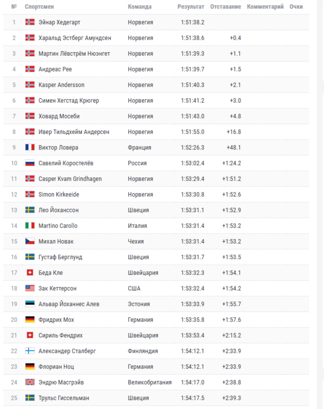 Не припомню, чтобы на финиш какого-то марафона приезжала группа из восьми представителей одной страны. И не просто одной страны, но и с отрывом от остальных участников. Норвежцы доминировали сегодня абсолютно во всех компонентах гонки. Первым из «не норвежцев» оказался француз Виктор Ловера, Савелий – второй в этой категории участников гонки.