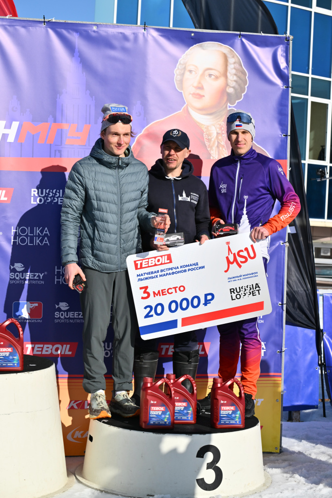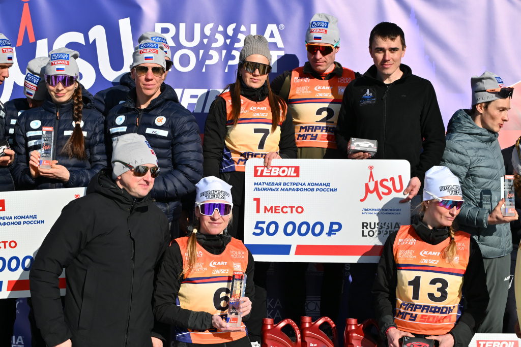 В командном зачете марафона, который прошел при поддержки корпорации Teboil, безоговорочную победу одержала Romanov Team. Второе место у "Сияния Севера", а замкнули тройку сильнейших хозяева марафона - лыжники МГУ.