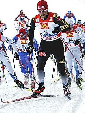 Немец Аксель Тайхманн вновь напомнил о себе. На этот раз он отметился красивой победой на домашней трассе в Оберхофе на II этапе Тур де Ски, по программе которого проходила мужская гонка преследования на 15 км классическим стилем. Второе место у Петтера Нуртуга. Дарио Колонья - третий, а россиянин Александр Легков остановился в шаге от пьедестала - он четвертый. Добавлено видео финиша 22:10 Сегодняшняя гонка напоминала больше не преследования, а масс-старт. Очень скоро гонщики слились в одну большую группу и ехали так практически до самого финиша. Наши Легков и Черноусов постоянно держались на второй-третьей позиции, как всегда придерживаясь тактики контроля отрывов. В подъемы Легков очень сильно натягивал, но надо сказать, что в них Александр забегал ёлкой, в то время как большинство его соперников, а особенно немцы в них закатывали. Выбравший лыжи "ноу вакс" Нуртуг старался не отстать, нагоняя на равнине. Было даже пара моментов, когда казалось, что он не удержится.