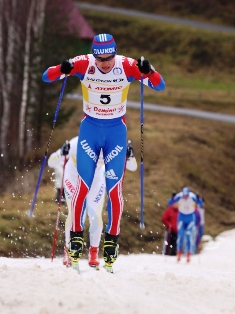 Сегодня в Югорске прошел первый день соревнований гран-при "Спринт Тур-2012" - двойное преследование. Шестикилометровая гонка, в которой две группы спортсменов стартовали одновременно одна классическим, одна свободным стилем, а в середине дистанции они меняли лыжи, палки, а соответственно и стиль прохождения дистанции. Победителем по итогам полуфинального и финального забегов стал россиянин Андрей Парфенов. Второе место у Алексея Петухова. Евгений Белов - третий.