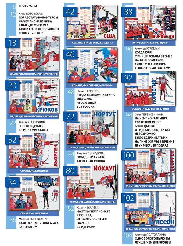 Таким образом, вы, наверное, уже поняли, что журнал «Лыжный спорт» №59 – специальный, и он целиком посвящён прошедшему минувшей зимой чемпионату мира по лыжным видам спорта в Валь ди Фиемме.