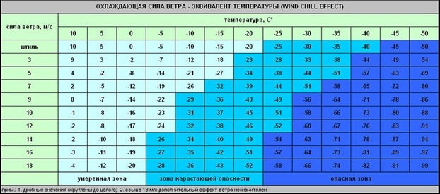 Итак, замещение теплого, поднимающегося вверх воздуха, холодным, или в спортивно-научном простонародье – конвекция, приводит к охлаждению. В теплую погоду конвективное охлаждение – это наш друг и его усиливают дышащими и вентилируемыми тканями. В холодную погоду, конвекция заставляет наш организм тратить больше энергии, чтобы сохранять теплый, комфортный микроклимат в тонком слое над кожей. И организм с этой проблемой справлялся бы, если бы не … ветер! Набрав нужную скорость, ветер может начисто лишить тело защитного микроклиматического слоя! Вот несколько значений: при нулевой температуре, но с ветром 10м/с тело охлаждается так же, как при температуре – 16° C без ветра, а при – 10° C с легким ветерком 5м/с – организм охлаждается как при – 21° C.