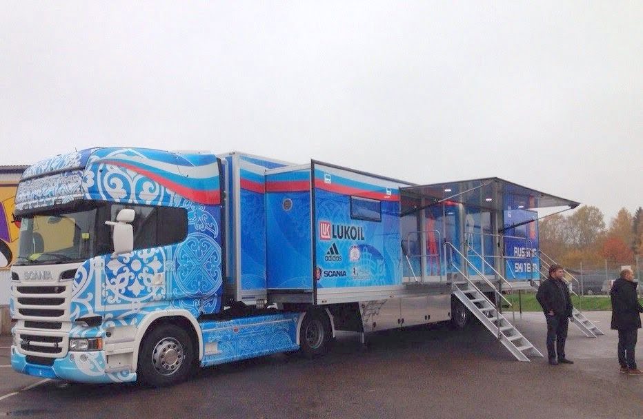 В Швеции был представлен сервисный вакс-грузовик сборной команды России по лыжным гонкам. Россия стала седьмой страной, располагающей своим полноразмерным грузовиком, позволяющим сервис-бригаде готовить лыжи в максимально комфортных условиях. Специально переоборудованными машинами обладают Швейцария, Норвегия, Германия, Финляндия, Канада и Франция. Ширина при раздвинутых бортах составляет 4 метра, длина 12 метров, 14 полноценных рабочих мест для сервисменов, мощная вентиляция и хорошее освещение - все что нужно для качественной работы.