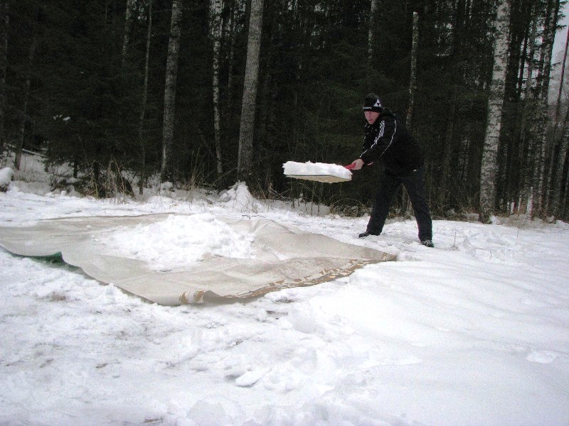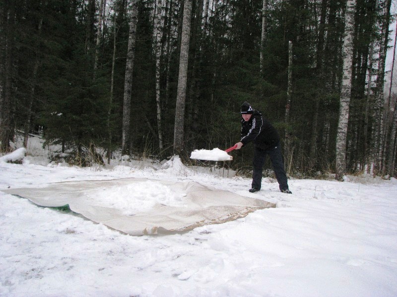 Уже к полудню практически весь круг был отсыпан. Осталось только укатать его снегоходами и выждать, чтобы мороз скрепил насыпанное.
