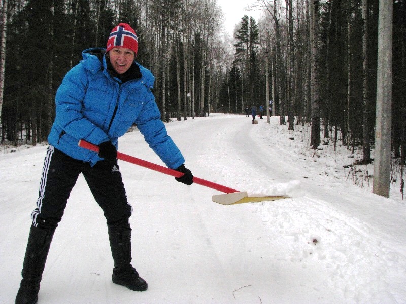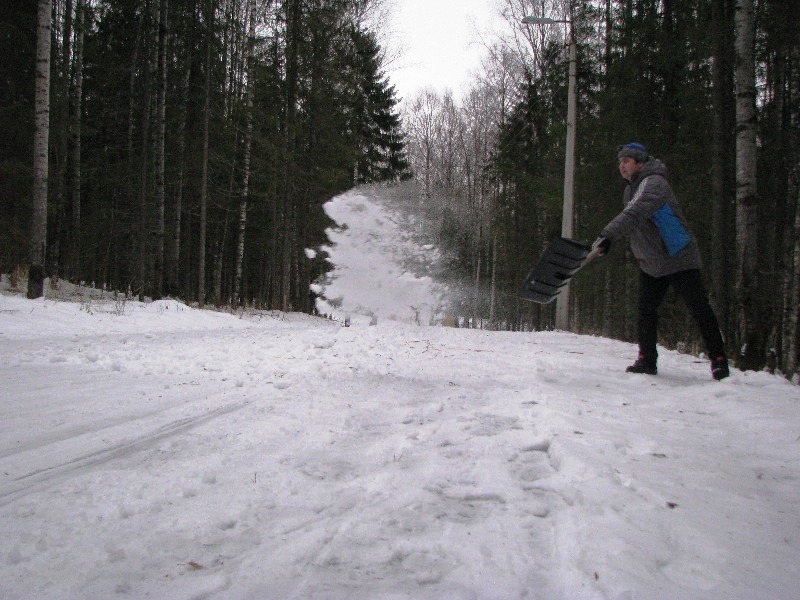 А к обеду на один из спусков дальней лыжероллерной петли, которую все эти дни усиленно утюжили лыжники, приехала пара снегоходов и несколько рабочих с лопатами: стали сгребать с обочин снег и бросать его под лыжи катящимся спортсменам. Спуск день ото дня становился все опаснее. А ту еще и морозы подоспели…