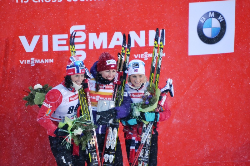 Тройка призеров: Марит Бьорген, Юстина Ковальчик, Терезе Йохауг, фото Алексея Соцкова