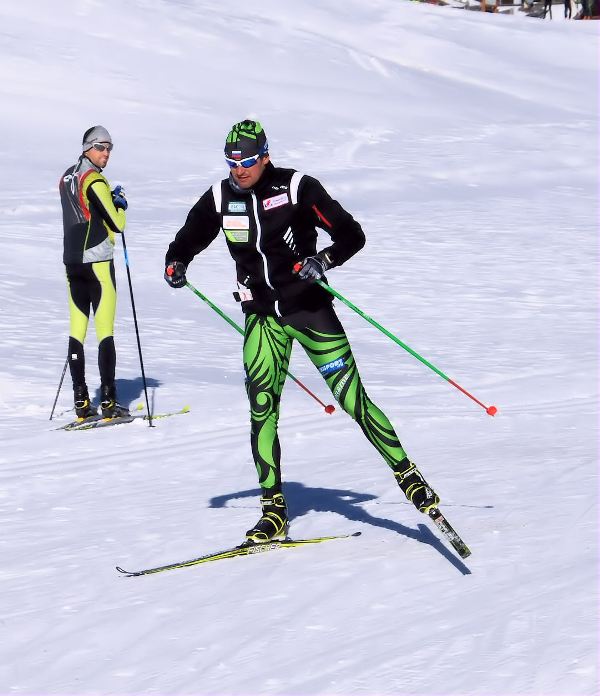 Погода и снежный покров трассы обещали скоростную гонку. Так и получилось. Средняя скорость лидеров была под стать велосипедной – 27 км/ч ! Рельеф трассы назвать простым было бы несправедливо. Дистанция состояла из двух больших кругов примерно по 20 км и стартовой петли около 3 км. В упрощенном виде большой круг можно описать, как подъем длиной 10 км с перепадом высоты 1000м и такой же спуск. Не забывайте, на какой абсолютной высоте расположена долина Ливиньо.