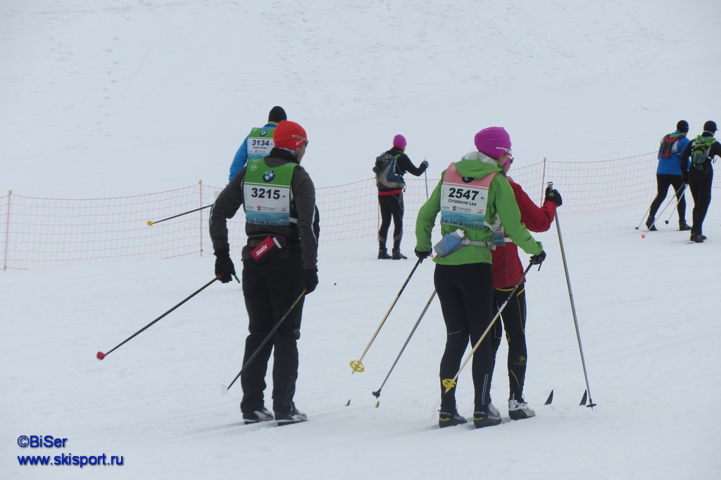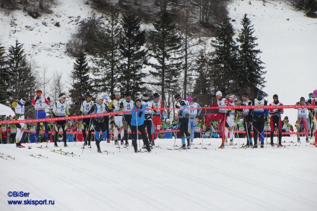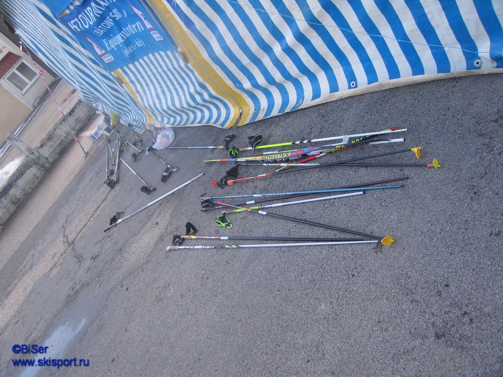 Наши стартовые номера соответствовали второй волне, то есть через 5 минут после первого кармана. Это было сделано для того, чтобы минимизировать простой участников на подъёме в Ле Руссе. Стартовали нормально. Более-менее все разобрались, катило у всех хорошо. Но Вадим пострадал. Ему на первых километрах сломали палку. Кто-то из болельщиков предоставил ему свою палку, но после финиша они так и не смогли друг друга найти и сделать обратный обмен.