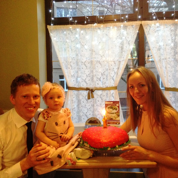 Николай Болотов с дочкой Кларой и женой Дашей