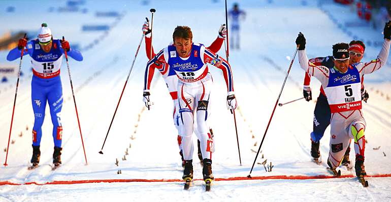 А теперь говорите о 2-х метрах. Но не приводите цифр, т.е. скорости прохождения этих пресловутых 2-х метров. Именно о продвижение обоих лыжников на этих метрах и идет разговор. А выиграл Хаттестад потому, что изначально, в момент разножки был впереди Крюкова, а также сделал более глубокую разножку.