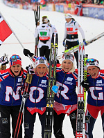 Сборная Норвегии в составе Ингвильд Флюгстад Ёстберг, Хейди Венг, Терезе Йохауг и Астрид Якобсен выигрывает женскую эстафету 4х5 км, которая прошла сегодня, 24 января, на этапе Кубка мира по лыжным гонкам 2014/2015 в чешском Нове Место. Второе место впервые в истории "больших" не спринтерских эстафет заняла сборна США. Финки - третьим, россиянки - девятые и 11-е.