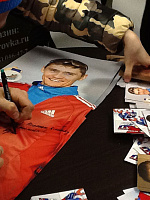 Начало встречи в 16 часов 30 минут. В программе: автограф-сессия, блиц интервью, а также фотографирование.