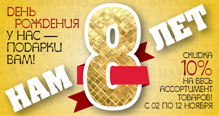 В период с 2 по 12 ноября будет проходить традиционное празднование дня рождения компании SKIWAX. С удовольствием разделяется эта радость с клиентами объявлением скидки на весь ассортимент в 10% (скидка не суммируется с уже действующими скидками). Постоянные покупатели, пришедшие в московский магазин с клубной картой, смогут получить 15% и поучаствовать в беспроигрышной лотерее – никто не останется без приза!