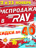 Не пропустите! Только 22 и 23 ноября в интернет-магазине RAY состоится распродажа со скидками до 40% на следующие категории товаров: