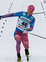 И сразу после спринта произошло непредвиденное. Устюгов и Большунов сбавили темп, рассчитывая на отдых, а вот Полторанин сбавлять не стал и утащил за собой Колонью и Харви, организовав небольшой отрыв. Казалось, сейчас наши лидеры, так здорово проведшие первую половину гонки, сейчас чуть восстановят силы и понесутся догонять, но не тут-то было! Устюгов откатывался всё дальше и дальше, Большунов не мог закрыть просвет, но тут, к счастью, на помощь пришел Андрей Ларьков. Он и до этого всё время держался в группе лидеров, хоть и не на первых ролях, а тут сумел переложиться в лидерское трио, преобразовав его в квартет. Видно было, что сил у Андрея достаточно, но всё равно было очень тревожно, так как опыта разборок за призовые места на этапах Кубка мира у Ларькова пока было не так много, как у соперников. На последнем подъеме он встал за Харви, параллельно шли Колонья и Полторанин. Казахстанец пытался атаковать швейцарца, но тот в какой-то момент перешел на ёлочку и занял свободное пространство. Ларьков же к концу подъема поравнялся с Харви, но тут трасса повернула, и из-за того что Андрей оказался на внешнем радиусе, он в этой группе остался четвертым. Впрочем, именно это отчасти и помогло россиянину, так как он сумел занять место в воздушном мешке на пятках соперников и на финишную прямую выкатил уже вторым, прямо за Алексеем Полтораниным. По соседней лыжне шел Харви, и Андрей, чтобы не пропустить канадца и побороться с представителем Казахстана выскочил на другую свободную колею. Воспользоваться свободным пространством у него получилось довольно хорошо, и он стал догонять Полторанина, однако тот всё равно не упустил победу. Впрочем, и второе место для Ларькова - это несомненный успех. Тем более что благодаря этому Колонья остался без призовых секунд на финише, финишировав четвертым.