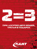 Дорогие друзья! 2=3 и это абсолютная правда! В сети спортивных магазинов Кант с 10 по 30 июня, выбрав три вещи, вы платите только за две, а третью, наименьшую по стоимости, вы забираете бесплатно!