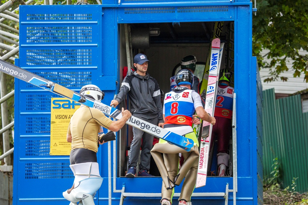 На самом деле, прыжки на лыжах с трамплина в летнее время – не экзотика: так спортсмены тренируются уже с давних пор. Прыгают они на искусственном покрытии, приземляясь на щётки из полимерного материала, смоченного водой – для скольжения. Лыжня, по которой они разгоняются – металлическая.