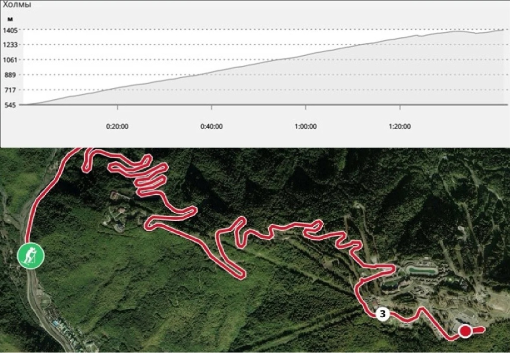 Непрерывный подъём 14 км с видами на Кавказские горы и с финишем на Олимпийском стадионе Лаура!