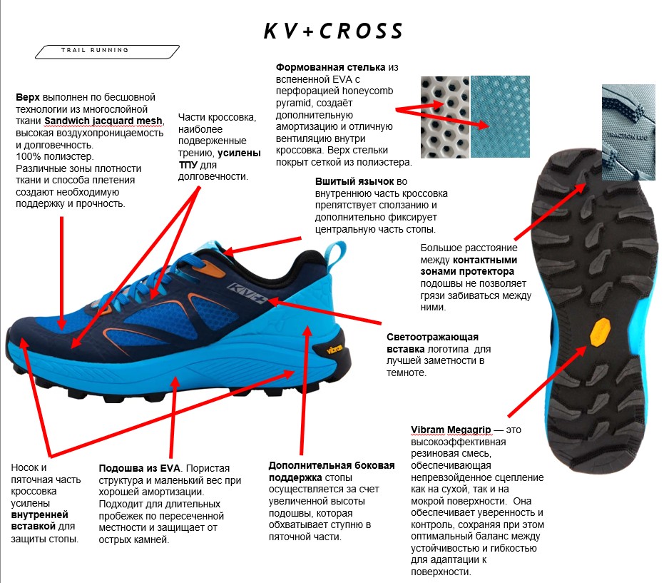 Внедорожные Cresta и Cross тоже имеют интересные функциональные особенности. Начнем с того, что яркая и харизматичная модель KV+ Cross имеет подошву Vibram, гарантирующую отличное сцепление и продвинутые эксплуатационные характеристики.