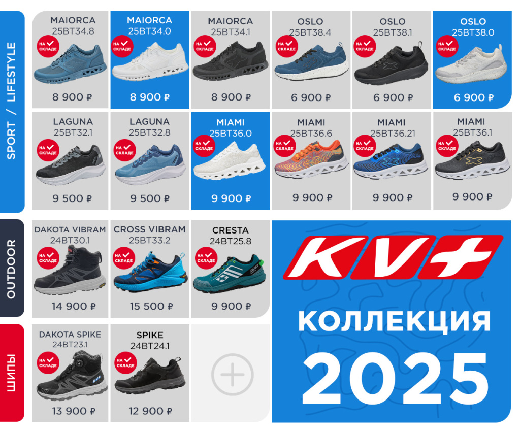 Спортивные модели включают в себя беговые асфальтовые кроссовки KV+ Laguna и две внедорожные модели – только что поступившая новинка Cross и запущенная в продажу осенью Cresta.