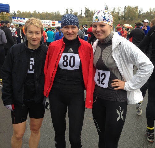 Алиса Першакова (справа) с обладательницей Кубка Дёминских марафонов-2013 Еленой Матвеевой и победительницей полумарафона Татьяной Ямбаевой. Фото: Анна Лозовская