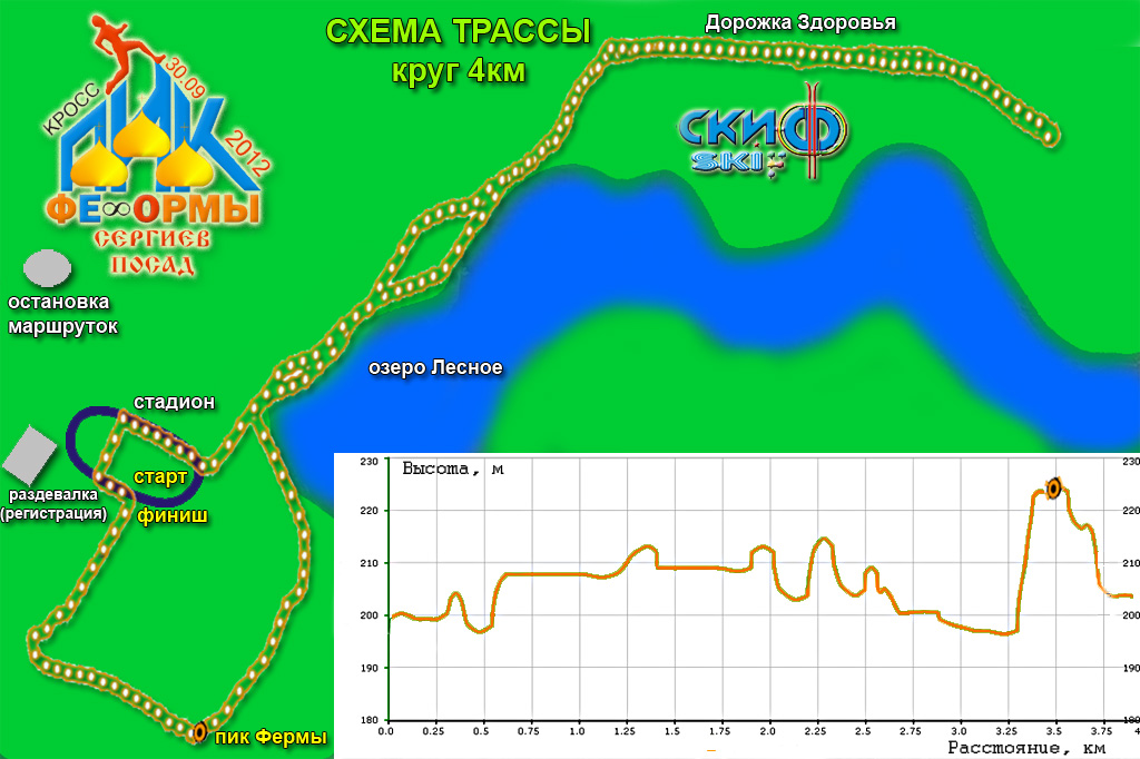 Для самых маленьких участников событий – до десяти лет – подготовлены дистанции 300-500 метров. Подрастающая спортивная смена в возрасте от 11 до 17 лет и ветераны преодолеют дистанции от 500 метров до 6 километров. Ну, а серьезные возможностями, легкие на подъем и веселые улыбкой атлетки и атлеты от 18 и старше пробегут 12 километров – именно этому контингенту спортсменов, готовых к любому испытанию на протяжении дистанции, предстоит неоднократный забег на самую высокую точку окрестностей Сергиева Посада, расположенную в микрорайоне Ферма – пик Фермы высотой без малого 30 метров по вертикали и чуть около 100 метров в длину. Без сомнения, там побывает каждый из стартовавших, поскольку быстрое покорение пика Фермы возможно только в максимальном пике формы.