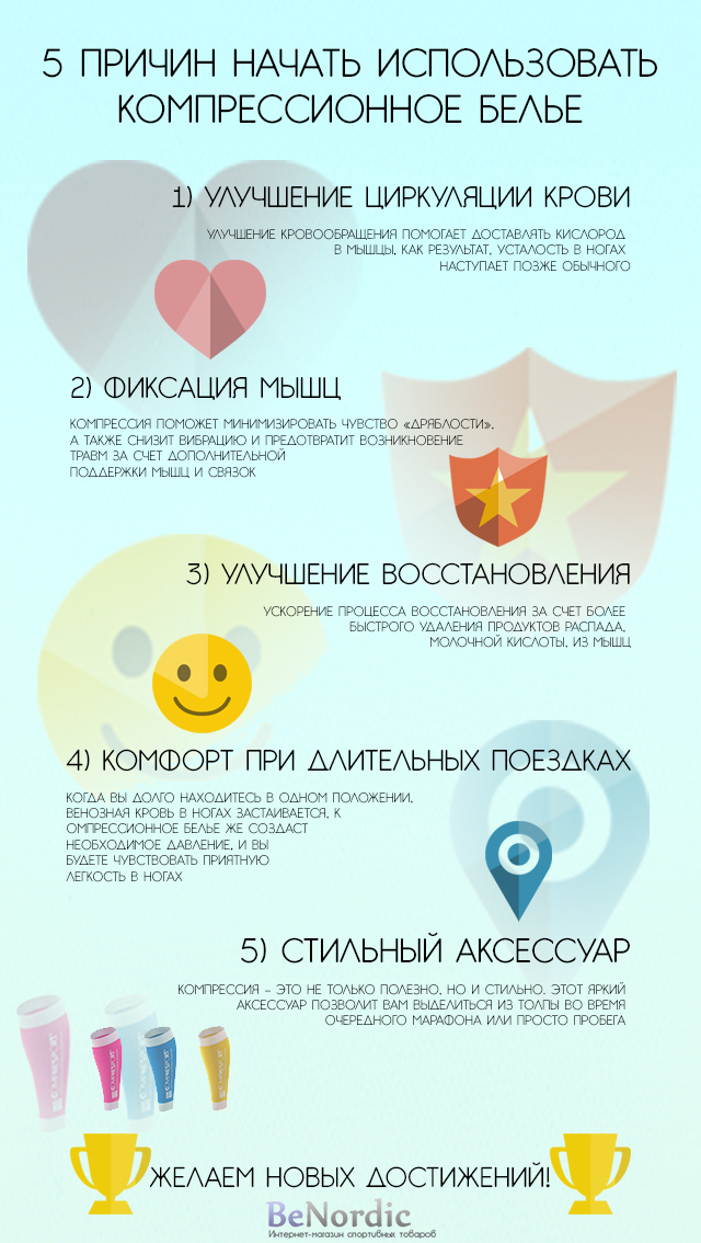 В последнее время компрессионная одежда становится все популярнее и популярнее среди спортсменов и просто любителей активного образа. Так в чем же ее преимущество? Для вас – пять причин начать использовать компрессионное белье: