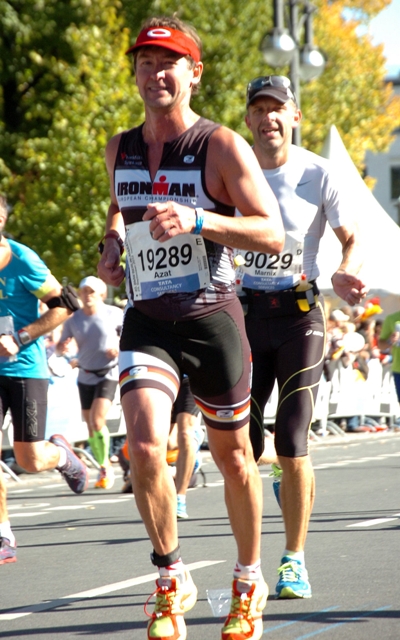 Уже через две недели команду ждал чемпионат Европы во Франкфурте. Едва придя в себя после изматывающего испытания французскими подъемами и спусками, Азат и Валя дружно отметились личными рекордами в Германии. Азат закончил дистанцию с результатом 10:31:54, Валя остановила часы на отметке 10:22:35.
