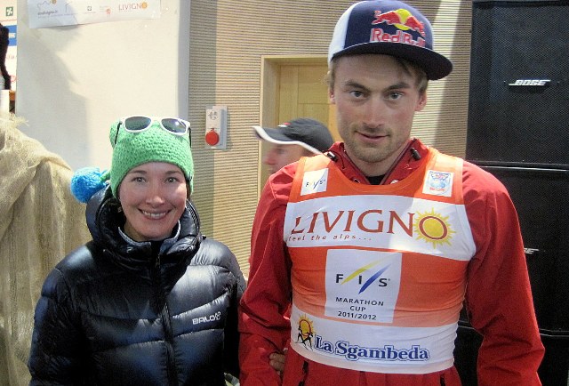 Валентина Кислухина с Петтером Нортугом перед стартом лыжного марафона La Sgambeda в итальянском Ливиньо
