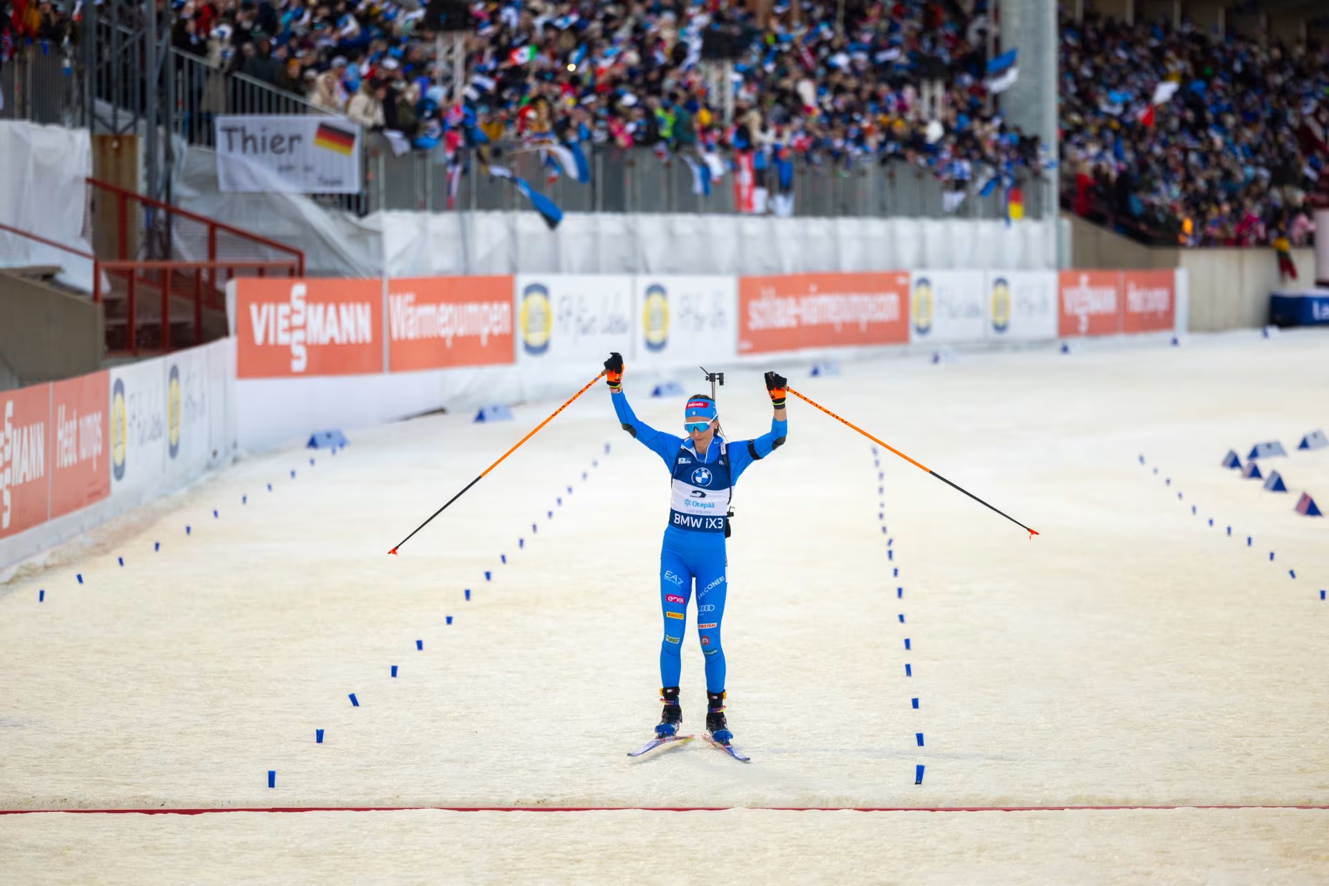 Француженка Жюлия Симон с чистой стрельбой выиграла спринтерскую гонку на VIII этапе Кубка мира по биатлону в эстонском Отепя. Всего 2.9 секунды уступила победительнице Лиза Витоцци из сборной Италии, также отстрелявшая без промахов. Третьей, и тоже с чистой стрельбой, стала лидер общего и малого зачётов француженка Лу Жанмонно, выигравшая досрочно Малый глобус в зачёте спринтерских гонок.