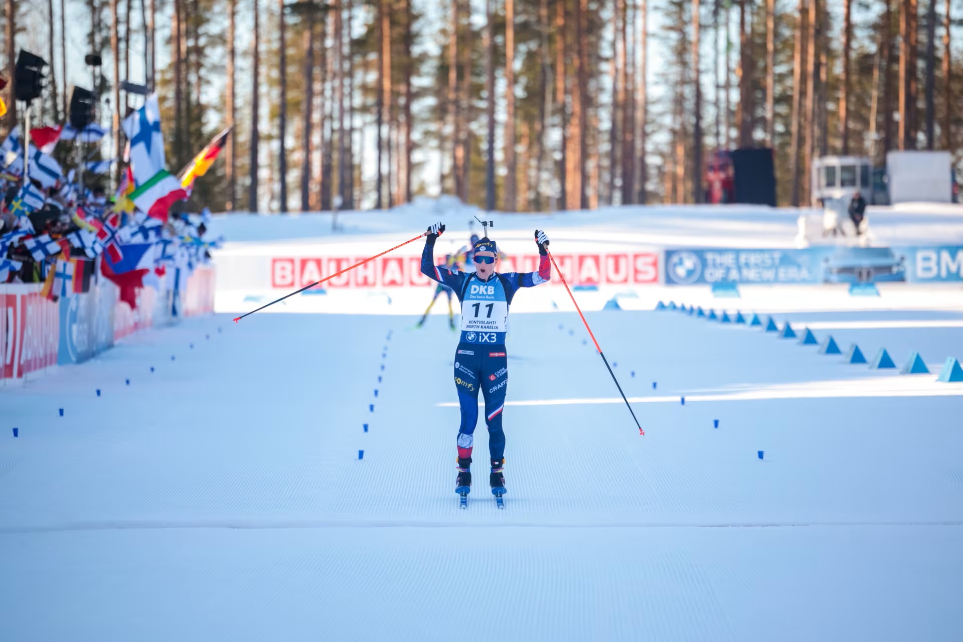 Француз Эрик Перро с чистой стрельбой выиграл индивидуальную гонку на VII этапе Кубка мира по биатлону в финском Контиолахти и забрал Малый хрустальный глобус в этом виде программы. Второе место в гонке занял норвежец Стурла Хольм Лагрейд, на третьем месте ещё один норвежец Ветле Шостад Кристиансен. Оба призёра, как и победитель, отстреляли без промахов. Эрик Перро выиграл две кубковые индивидуальные гонки из трёх, а ещё в этом виде у него серебро Олимпийских игр.