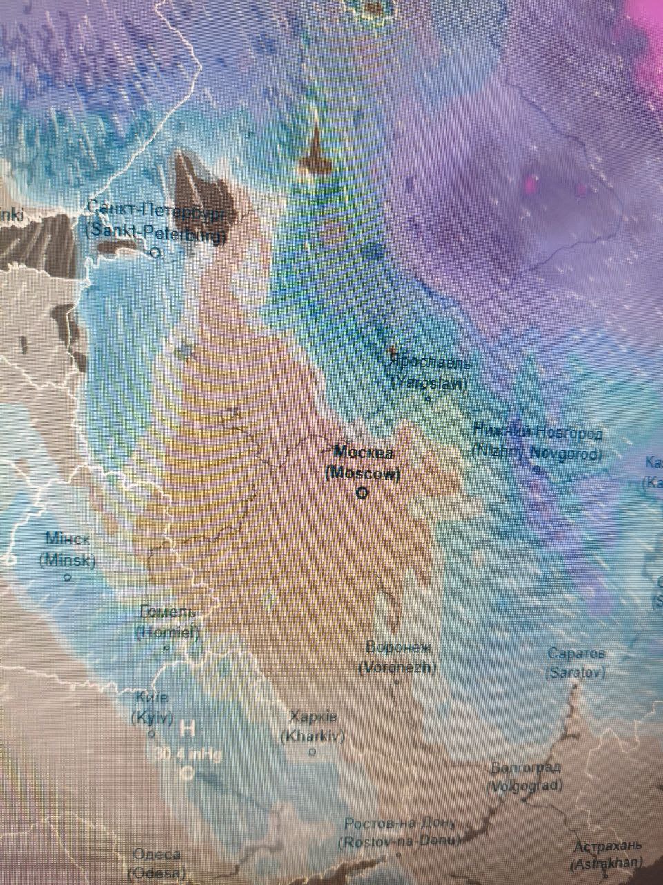 Антициклон, центр которого гуляет восточнее Москвы, закачивает воздух с юга и блокирует животворное северо-восточное направление. Так что на обозримое будущее ни снега, ни мороза (