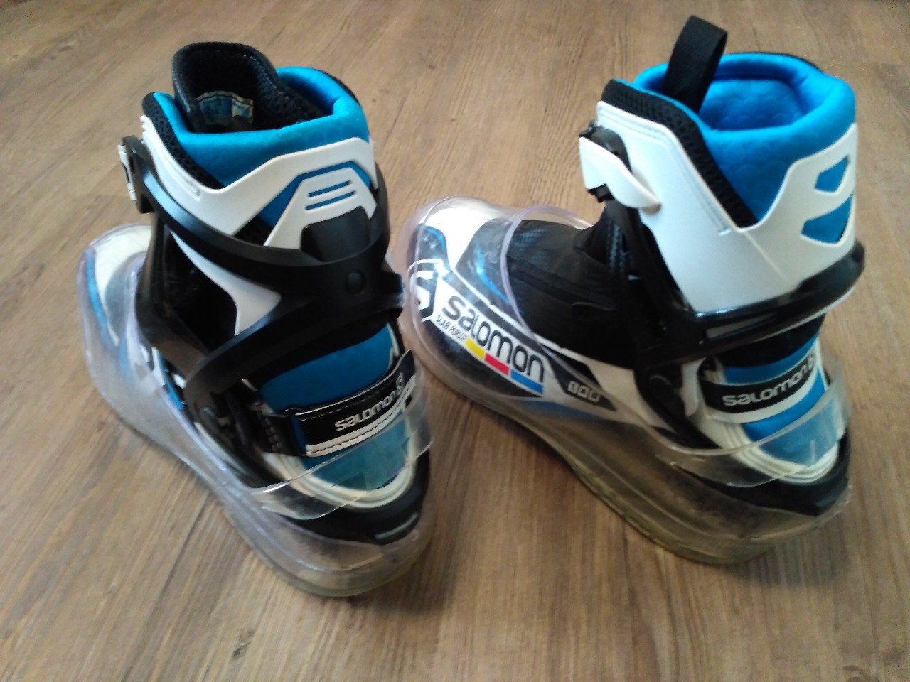 отличные галоши. Три года пользовал обычные черные, подвязывал завязками. Потом протерлась дырка на носке под скобой ботинка. Сейчас купил силиконовые прозрачные без подкладки. Замечательно сидят и на голых ботинках (коньковый S-lab) и с чехлами.