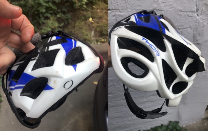 Может и рассечение получили по причине их износа? За ними надо следить и заменять по необходимости - на колхоз или фирменные. Особенно переднюю. Покупая шлем, лучше сразу подумать, где эти расходники брать. И размер подобрать поточнее, с минимальной необходимостью подгонки. Я лет 7 назад на велике как-то перелетел через капот резко подставившегося авто, траекторию свою воспроизвести не могу, шлемом (Mango Monza) приложился, он слетел - замок расстегнулся. Отделался легким ушибом, шоссер, на удивление, вообще без повреждений, даже колеса (хвала Мавик!) не повело. У авто помят капот и разбито лобовое.