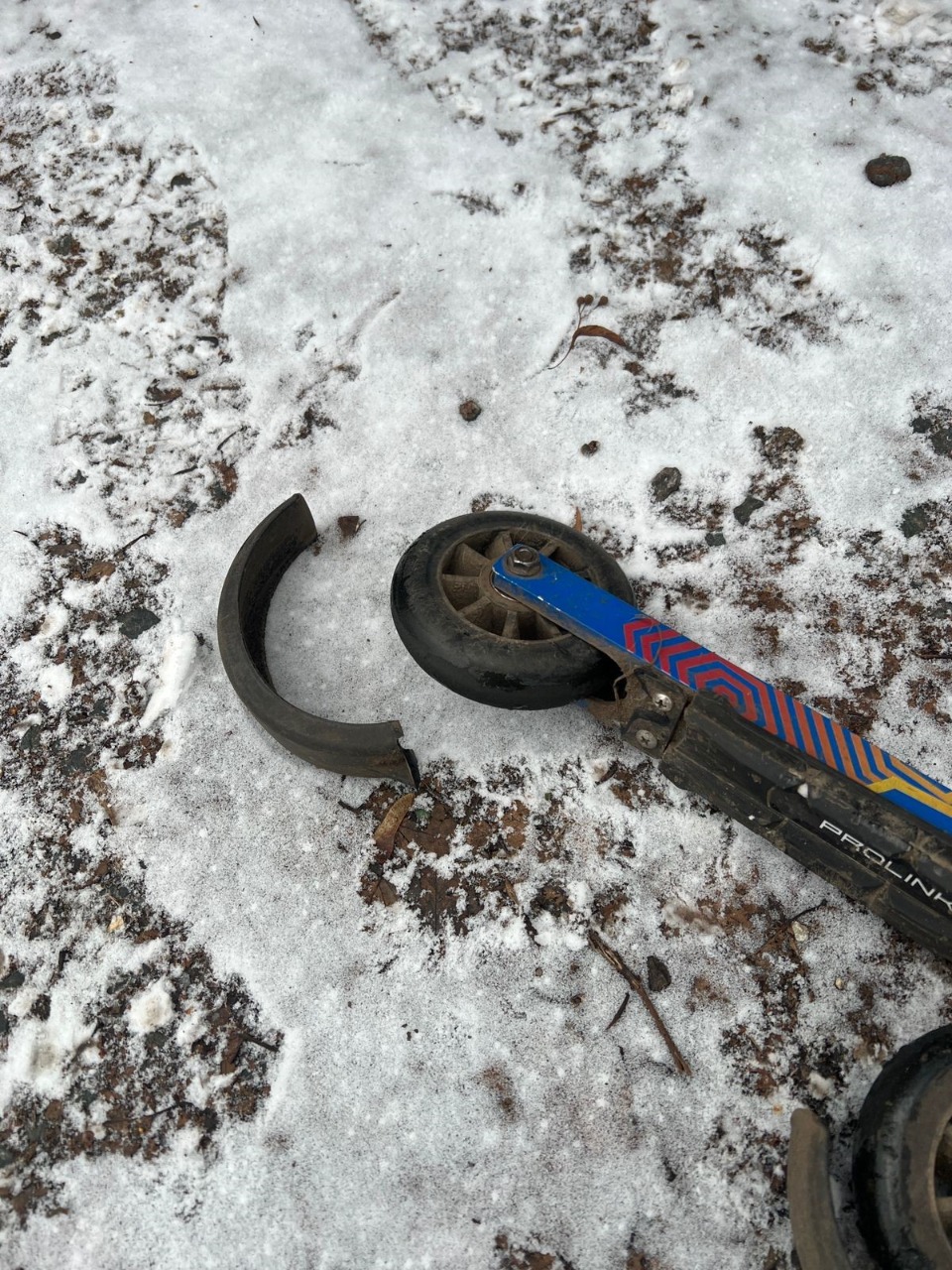 Всем привет! Сегодня -5, снега очень мало и катал на роллерах. На каком то шаге роллеры задними крыльями коснулись слегла , и бздынь, вот результат. Получается что материал крыльев у Spine на мороз не рассчитан совсем.