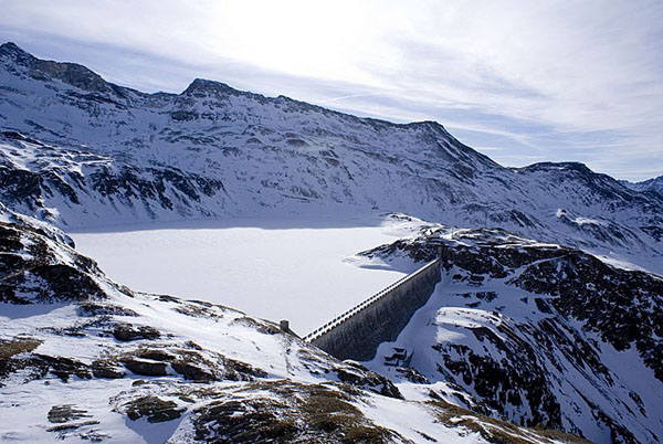 Еще в один из дней мы съездили в Червинию. Горы там более пологие, зато есть подъемник, похожий на пепелац, из которого открывается вид на дамбу.