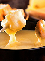 Фондю – это целая история, не только и не столько про еду. Фондю – это ритуал, общение, атмосфера, шутки и хорошее настроение. Пожалуй, это самое традиционное альпийское блюдо в Швейцарии. С фондю связано много обычаев, часто забавных. В частности, помешивать готовящееся блюдо стоит только по часовой стрелке, «рисуя» в горячем сыре восьмерки. Тот, кто уронит в фондю свой кусочек, должен выставить очередную бутылку для участников «банкета».