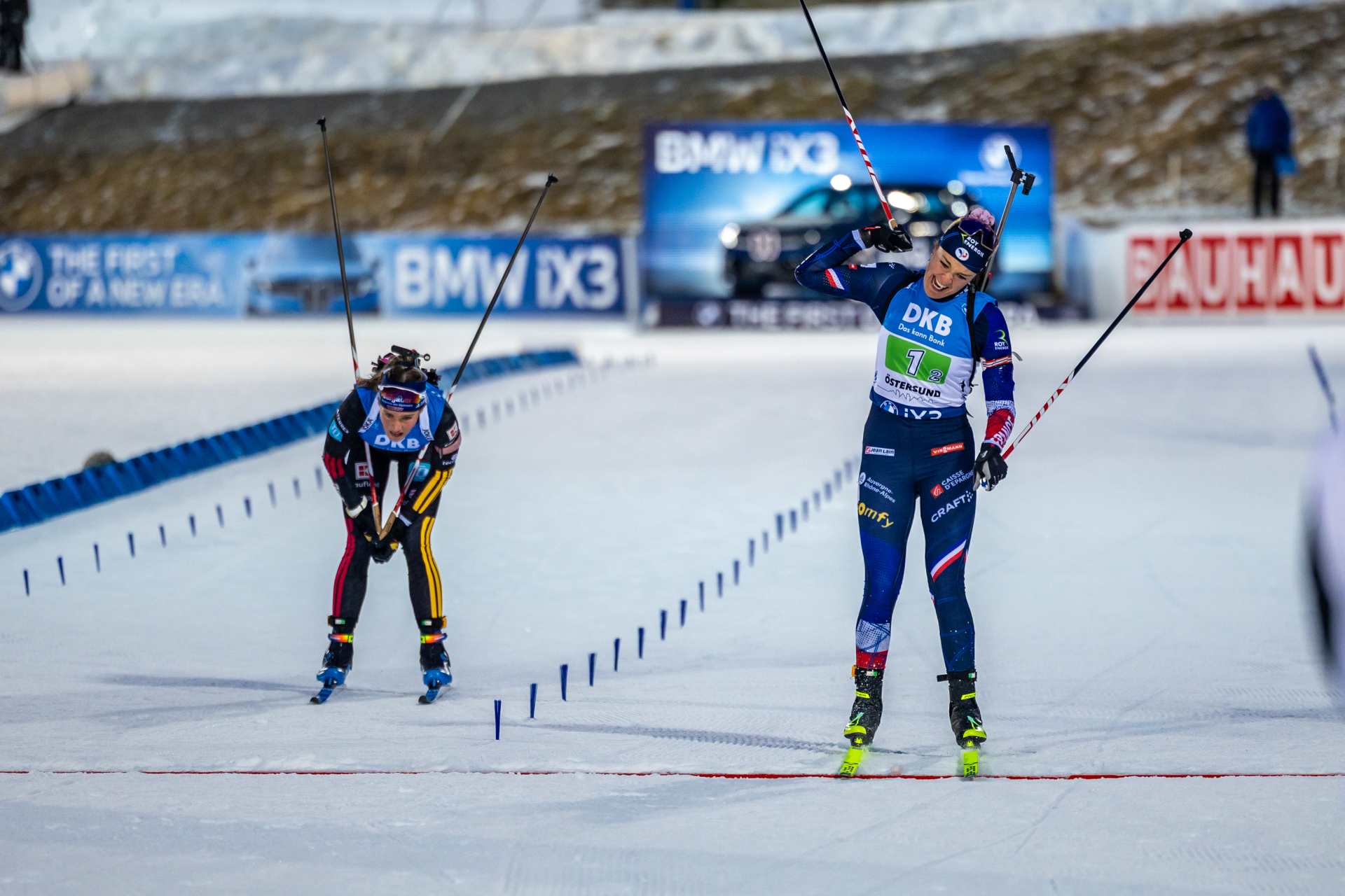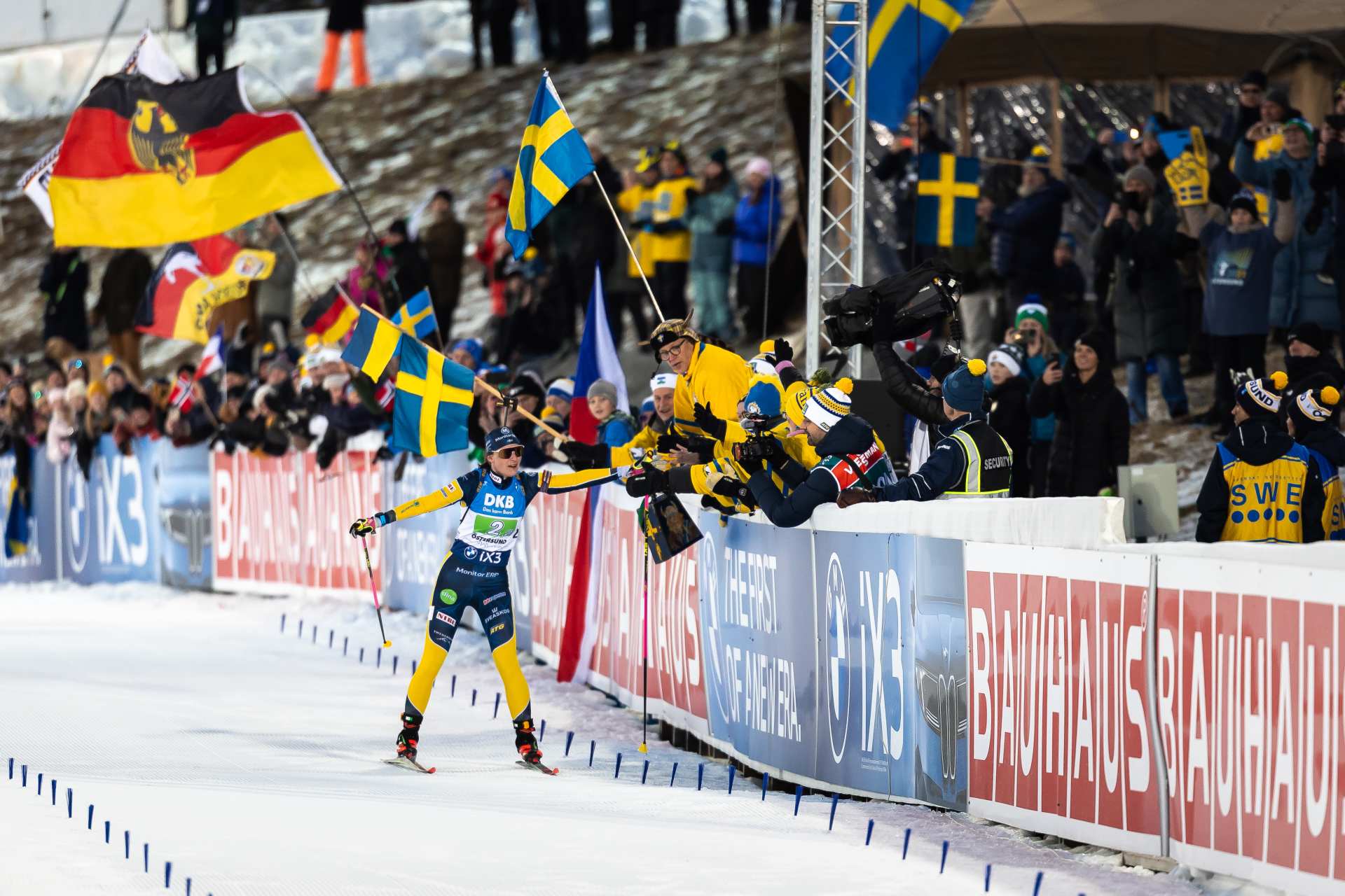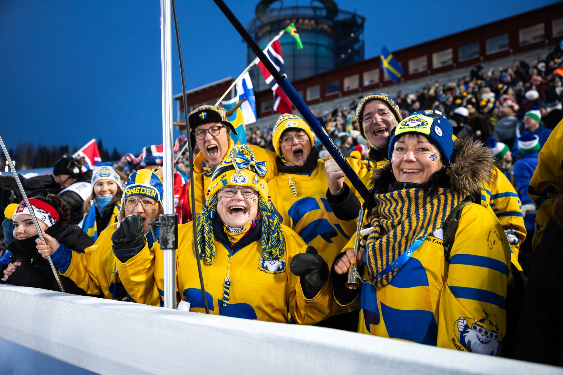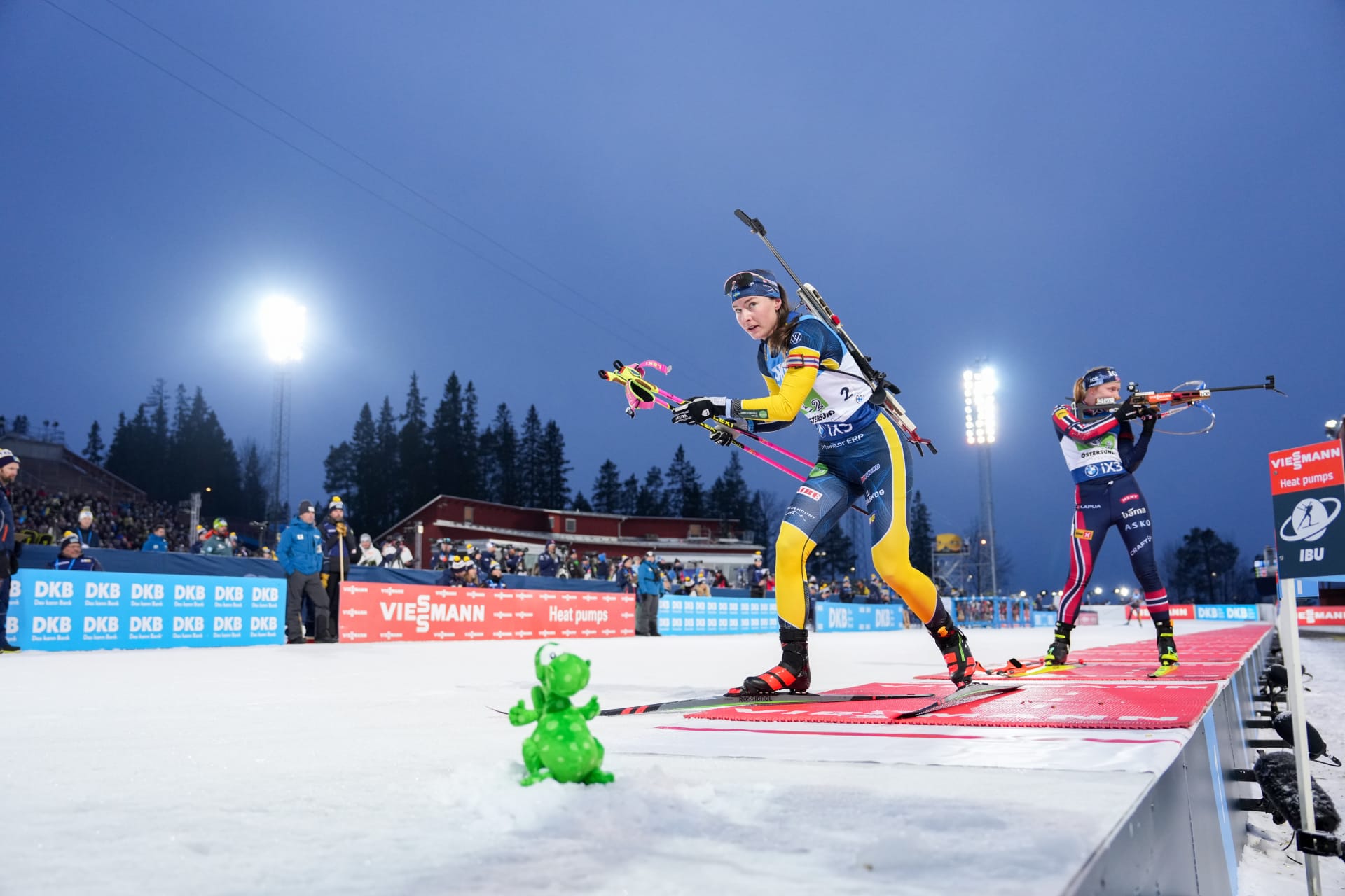 Одиночную смешанную эстафету к огромной радости местных трибун выиграли шведы Себастьян Самуэльссон и Элла Халварссон, причем лидировали они на протяжении всей гонки.