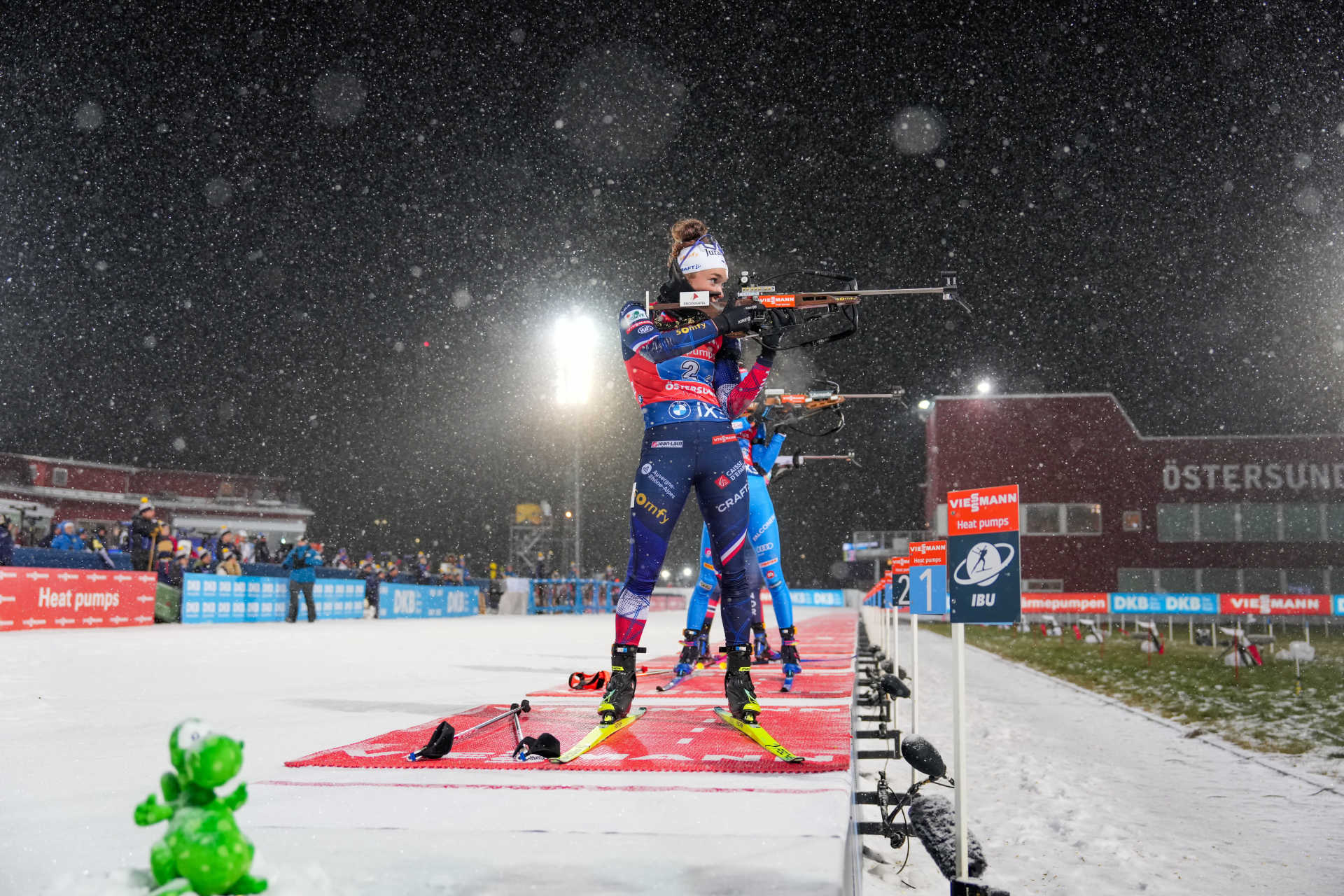 В смешанной эстафете победителями стали французы Эмильен Жаклен, Эрик Перро, Жюстин Брезаз-Буше, Лу Жанмонно. Второе место у сборной Италии, на третьем месте норвежская четвёрка. На последнем этапе Ингрид Тандревольд снова зашла на стойке на штрафной круг, но тренеры снова её поставили, да ещё на финишный этап. Напомним, вчера в женской эстафете у норвежки было три штрафных круга.
